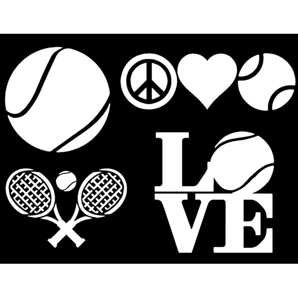 Sports Decal 4 Pack: Tennis - Assorted Decals (White)