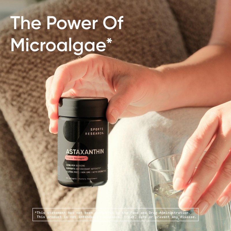 Sports Research® Triple Strength Astaxanthin 12mg w/Organic Coconut Oil - Antioxidant Supplement for Skin & Eye Health Support* - Soy Free · Non-GMO · Gluten Free - 60 Softgels