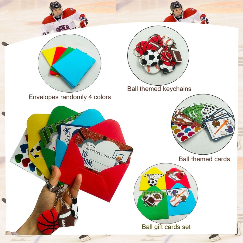 - SPORTS VALENTINES: Our Valentine's Day Gift Cards includes 24 pcs Sports Valentines Cards and 24 pcs Sports Ball Keychains