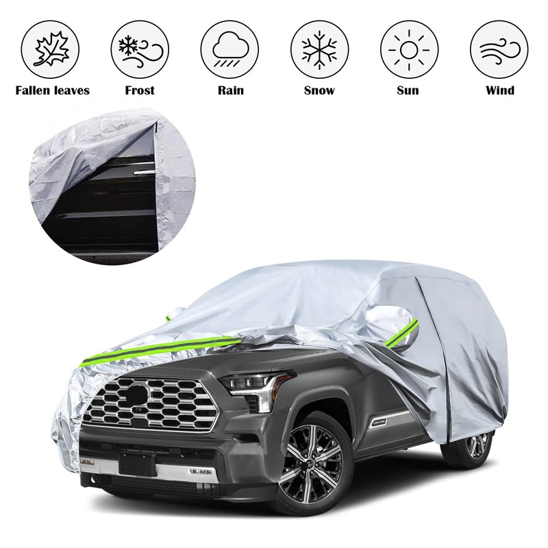 Waterproof Car Covers Replace for 2001-2025 Toyota Sequoia, 6 Layers Silver All Weather Custom-fit Car Cover with Zipper Door & Windproof Bands for Snow Rain Dust Hail Protection