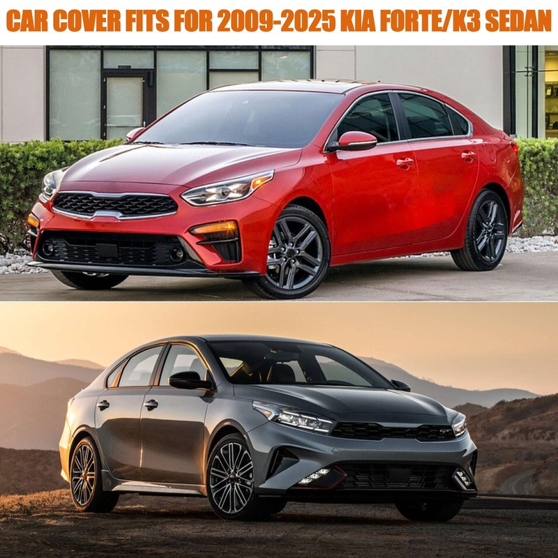 - Compatible with: This Waterproof All Weather Full Car Cover Perfectly Fit for 2009-2024 2025 Kia Forte/K3 Sedan LX, EX, SX, FE, LXS, GT-Line, and GT. Fully protects your Car like a mobile garage