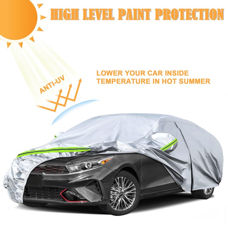 - All Weather Car Cover: Sportuli car covers can handle it all no matter hot sun or cold weather. The strengthful material keeps your car safe from sun, snow, frost, rain, sand, dust, leaves, branches and birds dropping