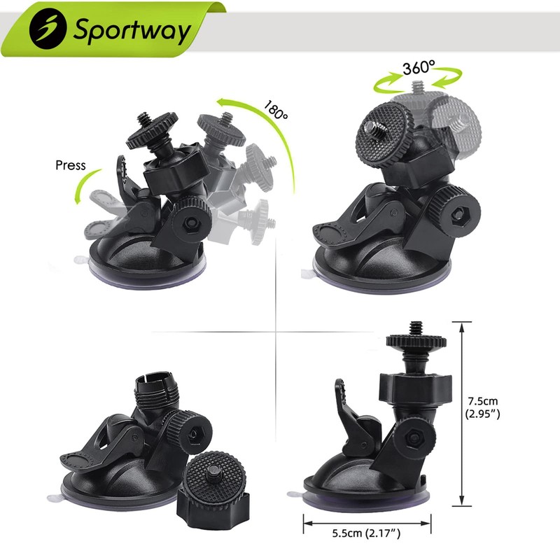 Sportway Sportway S30 Dash Cam Suction Mount (2nd Gen) with 10pcs Joints for REXING,Z-Edge,Old Shark,YI,KDLINKS,Falcon Zero,Transcend,Crosstour,VANTRUE,GoPro Hero and Most Other Dash Cameras DVR GPS