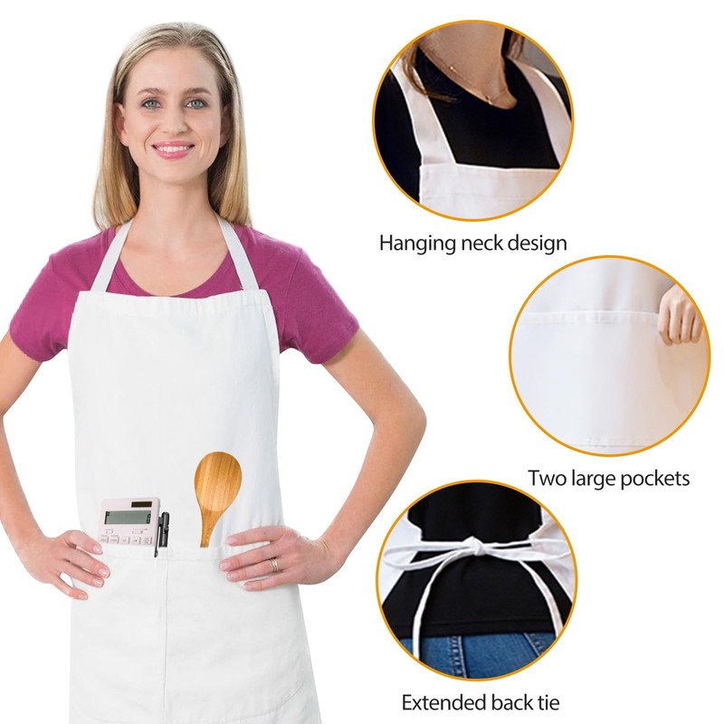 - High Quality Material The bib aprons are made of high quality polyester and cotton, soft, comfortable, breathable, lightweight, durable, easy to clean, non-fading, resists wrinkles and shrinkage.