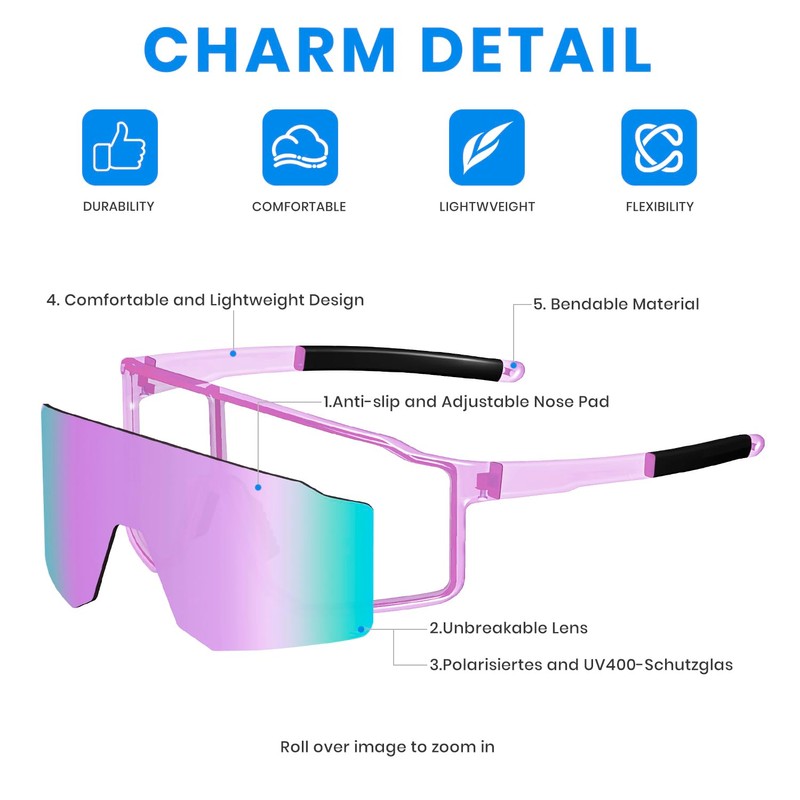 - TR90 material: Running sunglasses heat-resistant, UV resistant, and non slip silicone nose pads ensure stability and prevent slipping during running/cycling. Paired with UV400 polarizing lenses, they efficiently filter out glaring light, providing all-weather protection for both eyes during mountain climbing and cycling activities, and providing no burden during intense exercise