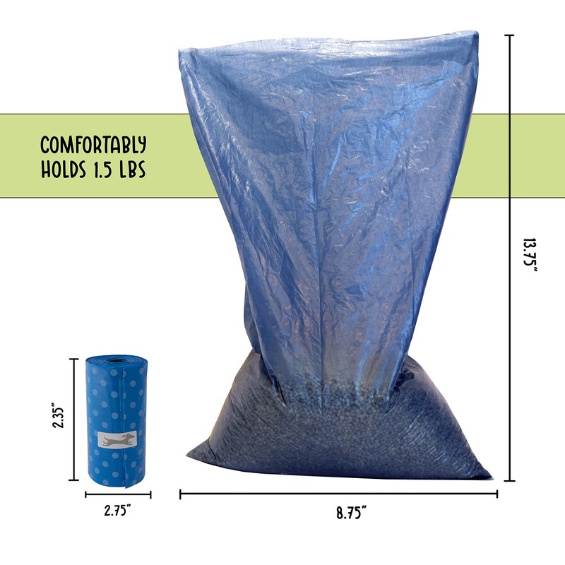 - This refill easily fits into any standard waste bag dispenser and features a cute polka dog design