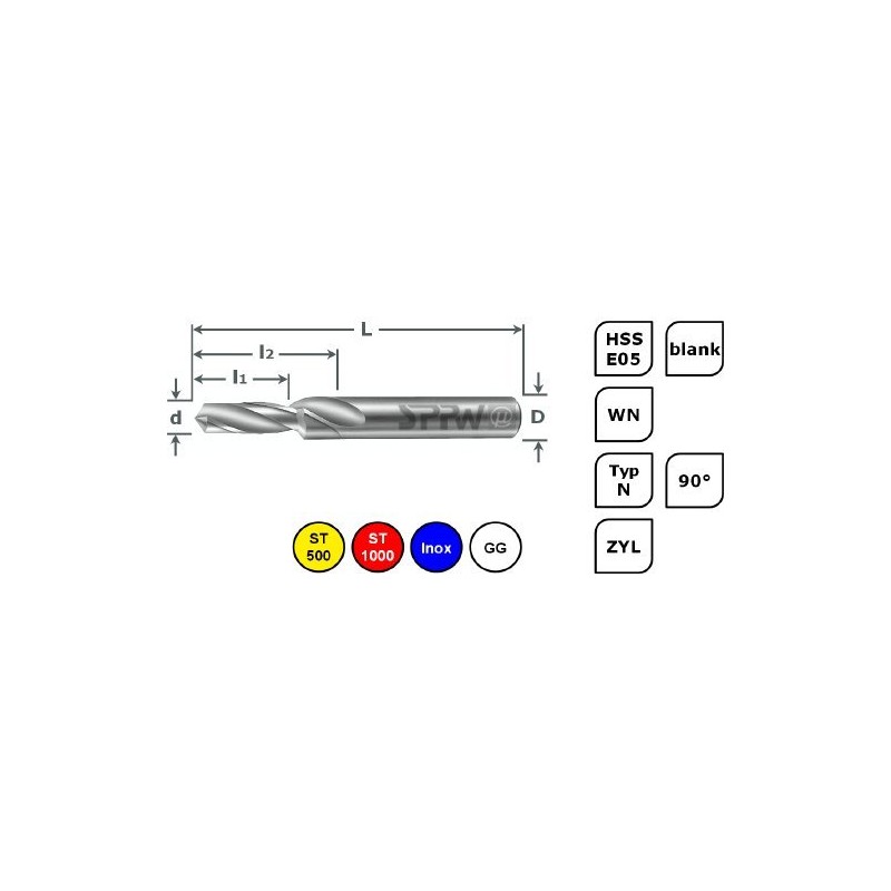 - For tapping drill holes (DIN 336 1). High accuracy. Fluchtgenaues penetration of holes and reduction in one step. Countersink 90 °. Surface blank.