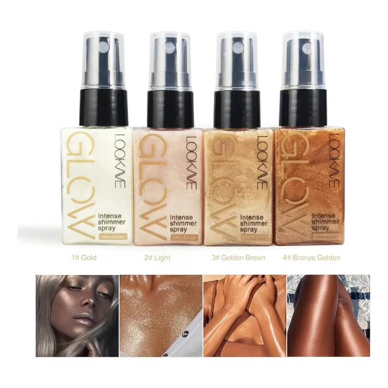 1. Spray iluminador líquido de alta coloración, un spray ligero puede crear un efecto de maquillaje brillante, duradero y adecuado para todos los colores de piel.
