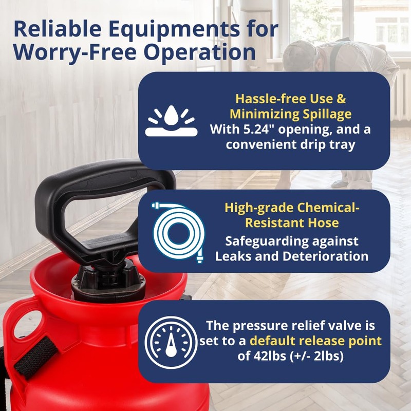 - ✅SAFETY AND RELIABILITY: Features a chemical-resistant hose and pressure relief valve for secure and worry-free operation.