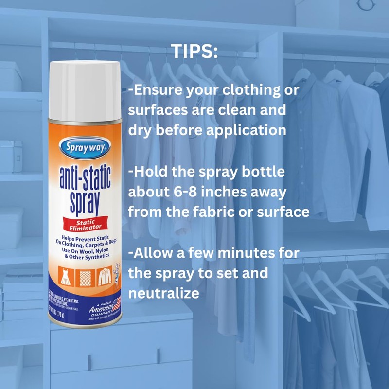 Sprayway Anti-Static Spray reduces static cling and eliminates static shock on clothing, carpets, rugs, furniture, drapes and more.