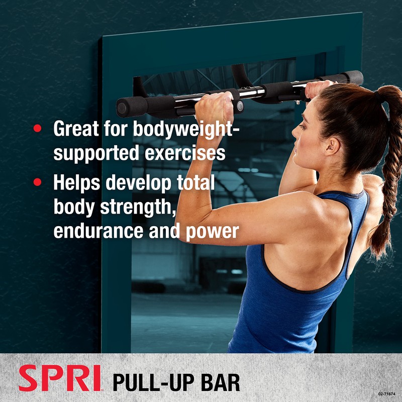 - Strength Training Pull-Up Bars - The SPRI pull up bar features 8 grips with 12 different ways to use for a versatile home workout. Train and develop total body strength, endurance, and power with this exercise pull up bar that supports up to 250 lbs.