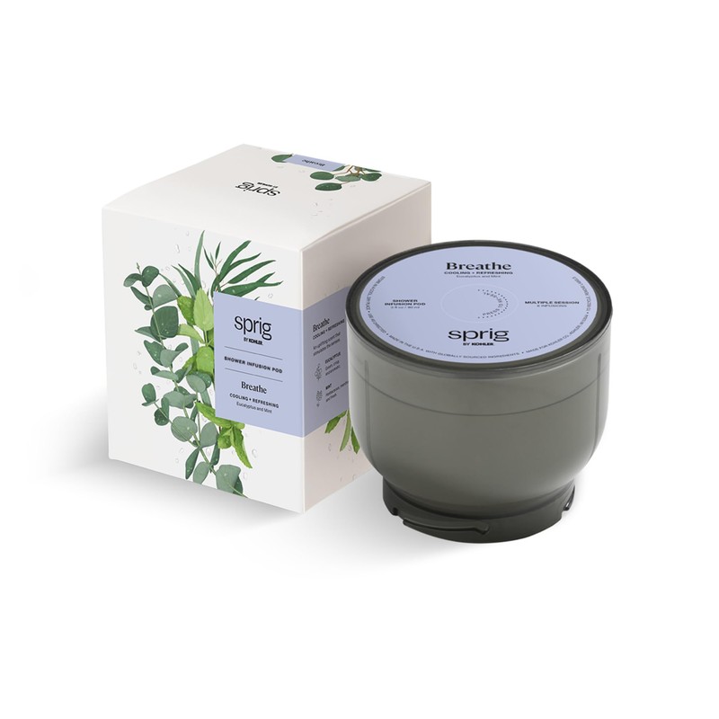 Sprig by Kohler Eucalyptus + Mint Multi-Use Shower Infusion Pod, Enhanced with Hyaluronic Acid and Sodium PCA for Your Skin and Hair – Breathe Blend, 8 Uses