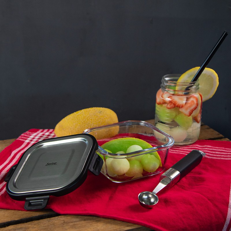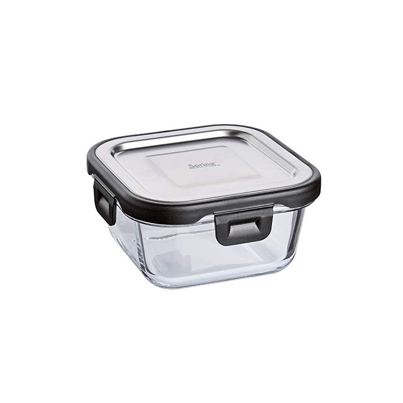 Spring Fusion2+ Square Storage Container 11.7 x 11.7 cm, 320 ml, Glass, Stainless Steel