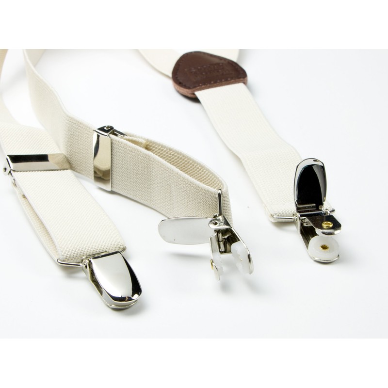 - Y-Back style suspender with leather crosspatch. Adjustable 1" wide elastics for comfort and fit.