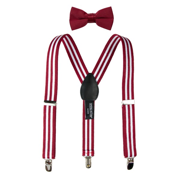 Spring Notion Boys' Suspenders and Solid Color Bowtie Set White Red Stripes Large