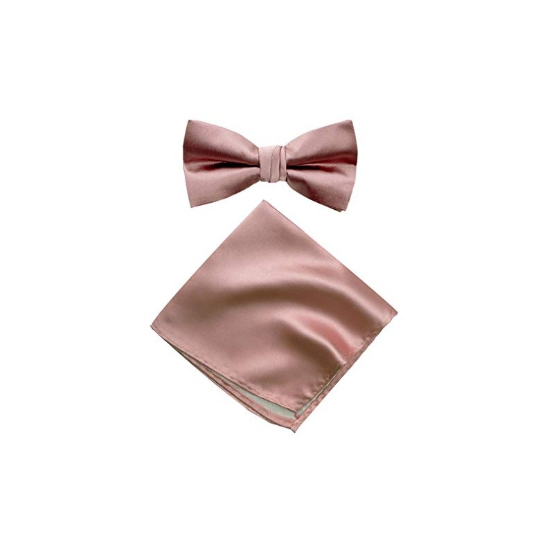 Spring Notion Men's Solid Color Satin Microfiber Bow Tie and Hankerchief Set Pink Copper