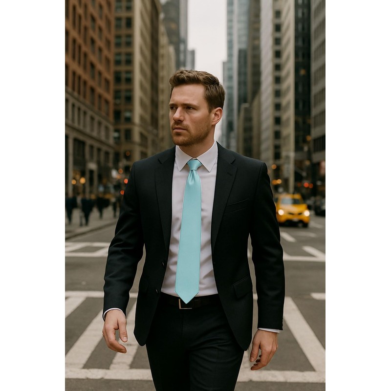 Spring Notion Men's Solid Color Satin Microfiber Tie, Skinny Aqua