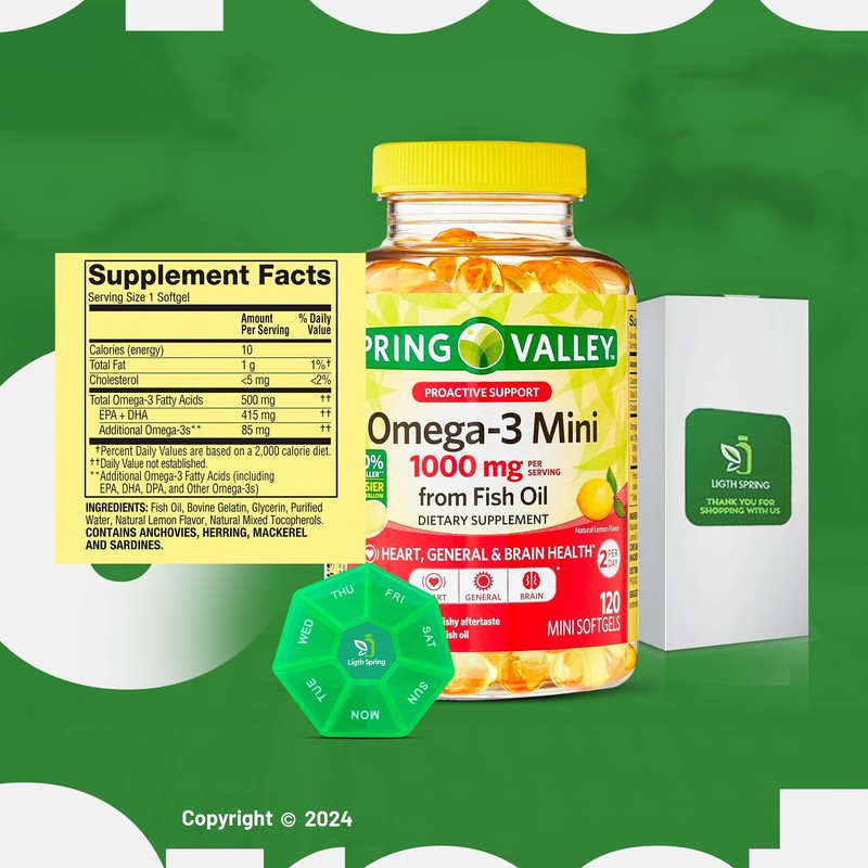 Spring Valley Omega-3 Mini Fish Oil Softgels, 1000 mg, 120 Count Bundle with Exclusive Vitamins & Minerals A to Z - Better Ligth&Spring Guide (2 Items)