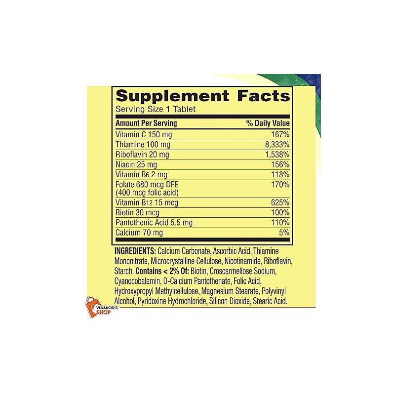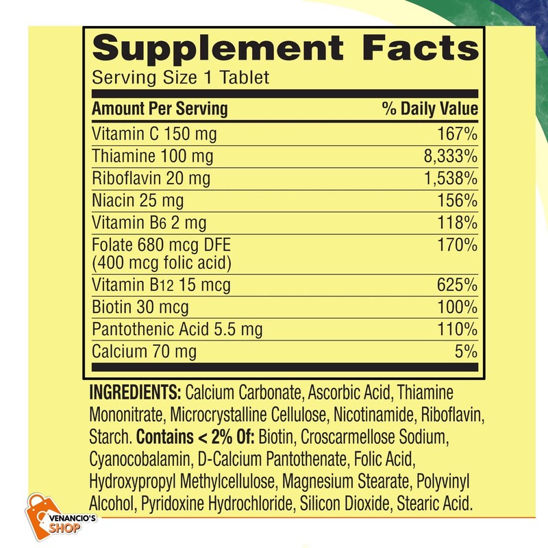 - Super Vitamin B Complex Tablets, Dietary Supplement, 100 Count (Pack of 1)