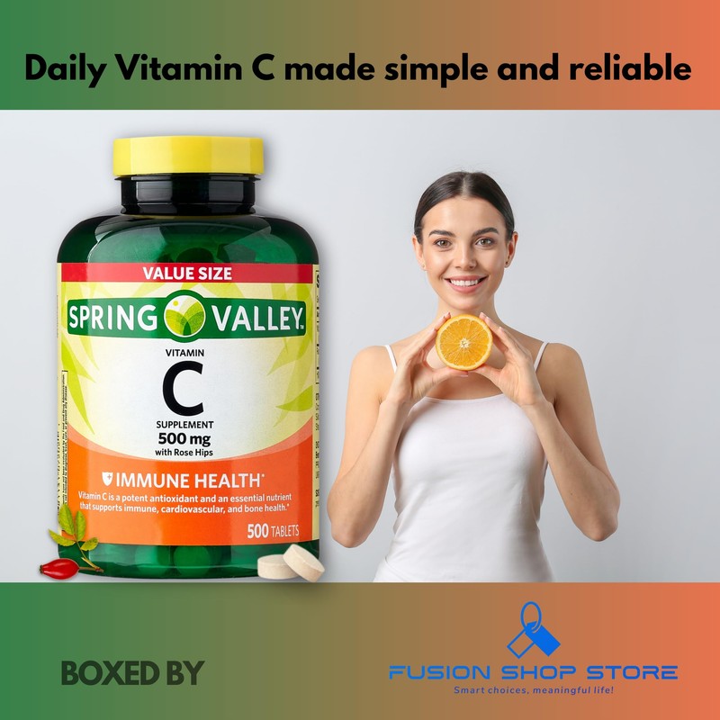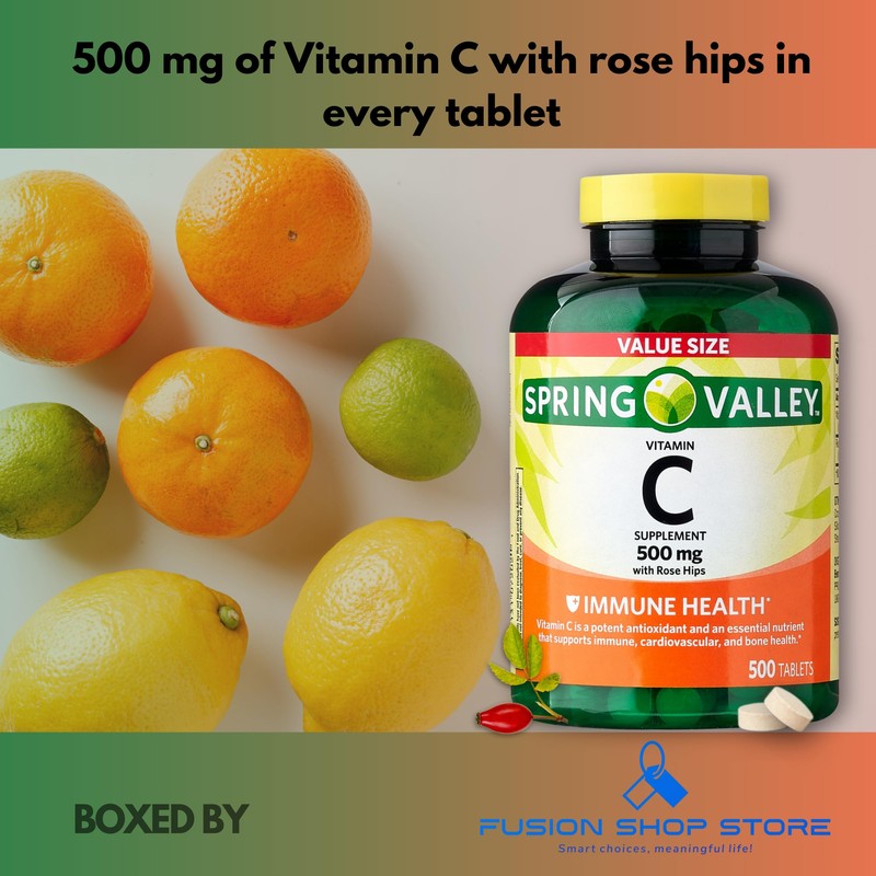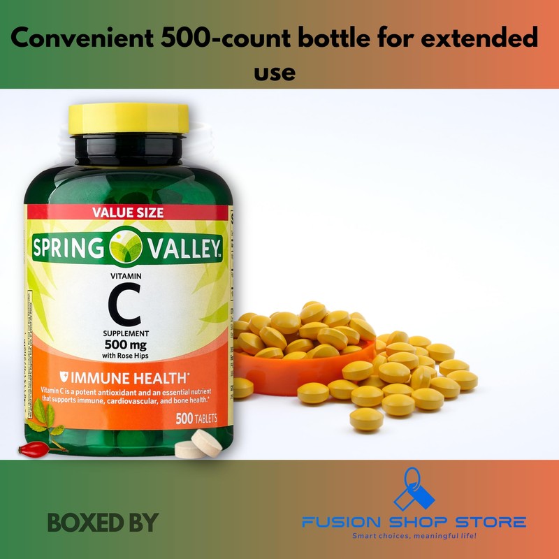 Spring Valley Vitamin C 500mg- with Rose HIPS 500 Tablets, Boxed by Fusion Shop Store