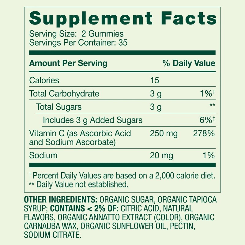 • Each gummy provides a 250mg boost of immune-supporting Vitamin C