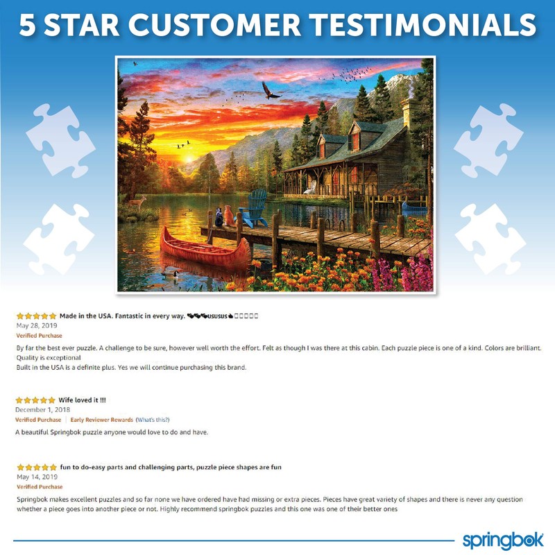 - MISSING PIECE NO WORRY WARRANTY - All Springbok Puzzles are covered with our satisfaction guarantee on materials and craftmanship