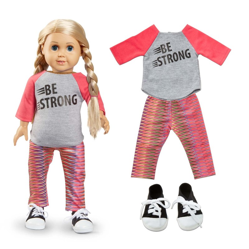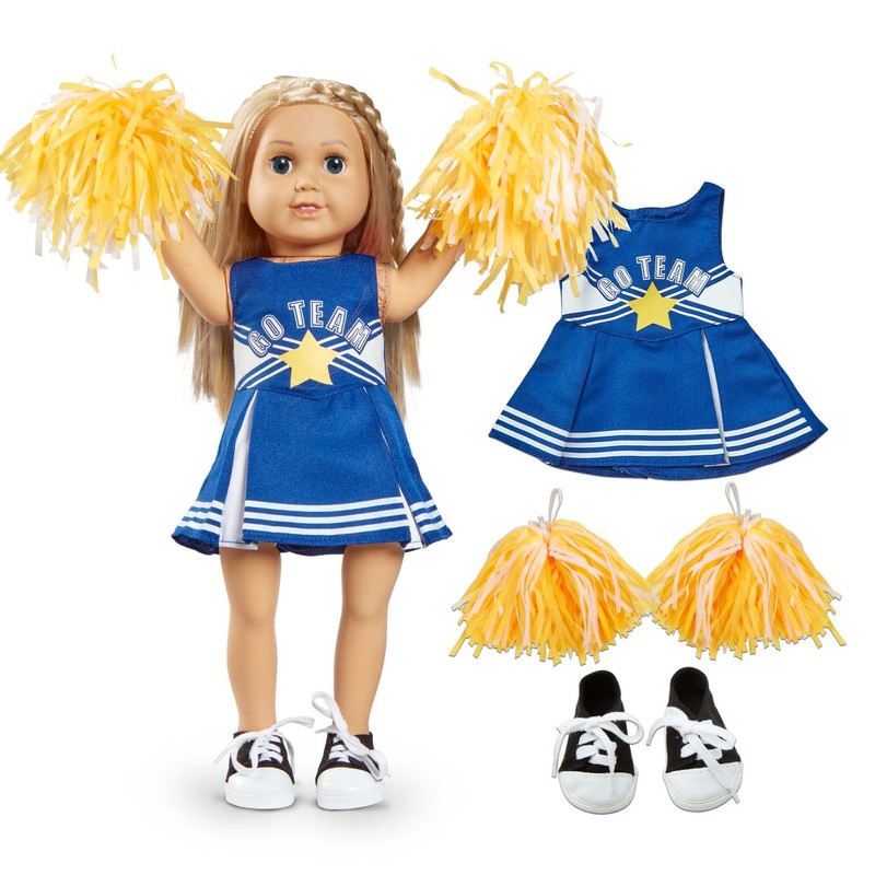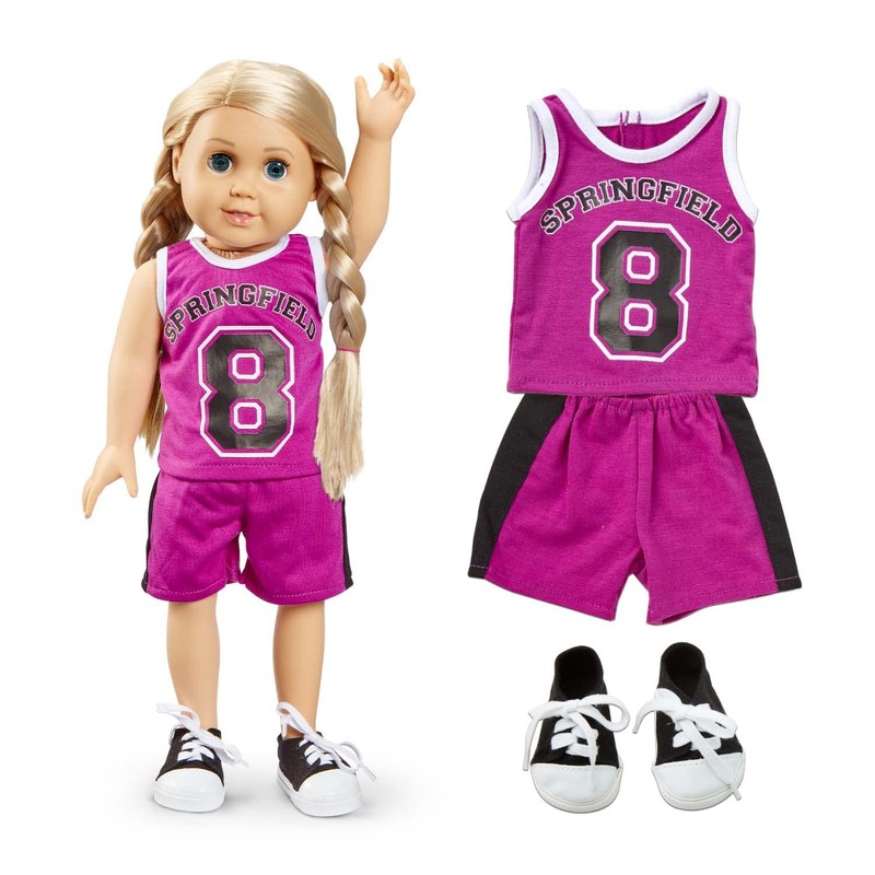 - 4 Sporty Outfits! The sporty bundle includes 4 active doll outfits: basketball, soccer, cheerleading and running.