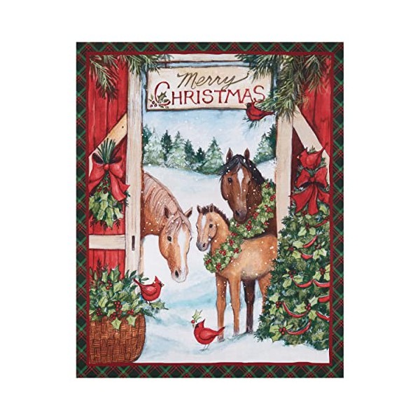 Springs Creative Christmas Three Horses 36" Panel Red, Fabric by The Yard