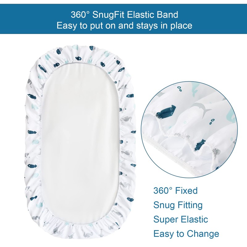 - Super Soft & Quantity Options: These bassinet sheets fitted have been carefully selected to be soft and breathable. No matter boy or girl, you can always find the best choice to match your bassinet mattress. We offer whales, dinosaurs, ocean, pink, white, gray, aqua cute print. True to color. True to size.
