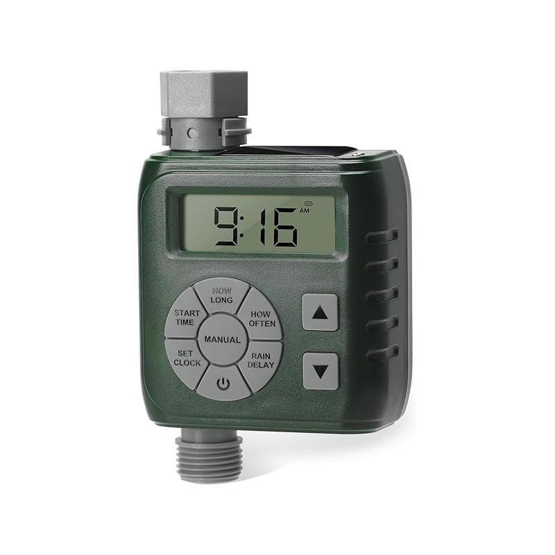 Sprinkler Timer, Programmable Irrigation Water Timer for Garden Hose, Solar/Battery Dual Power & Professional Leak-Proof Design, Rain Delay/Auto/Manual Watering System, Green