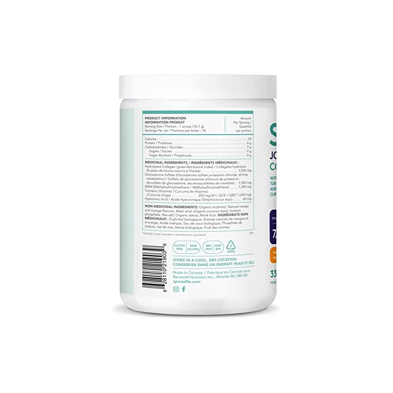 Sproos? Joint Collagen is a synergistic combination of collagen and other active ingredients, designed to work meaningfully from within to enhance your joint health. Add Sproos to water for a refreshing daily beverage and your joints will thank you!