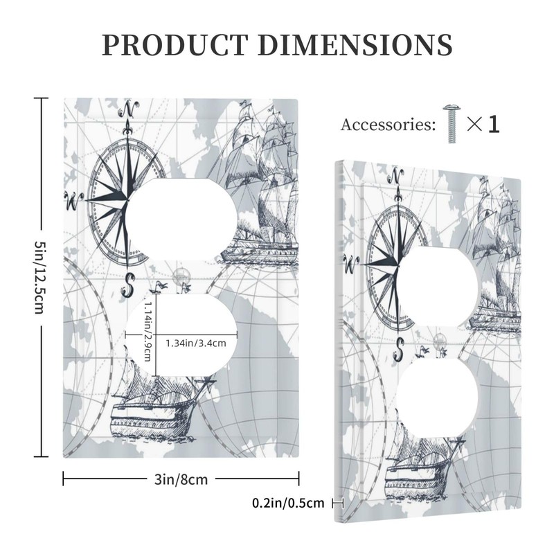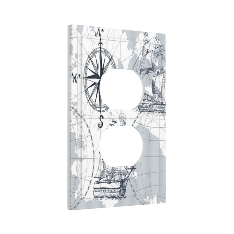 Spshian Outlet Covers Nautical Sailboat Modern Compass Sketch Ship 1 Gang Duplex Light Switch Cover Plate Decorative Wall Plates Electrical Switchplate Receptacle Cover for Bathroom Bedroom Decor