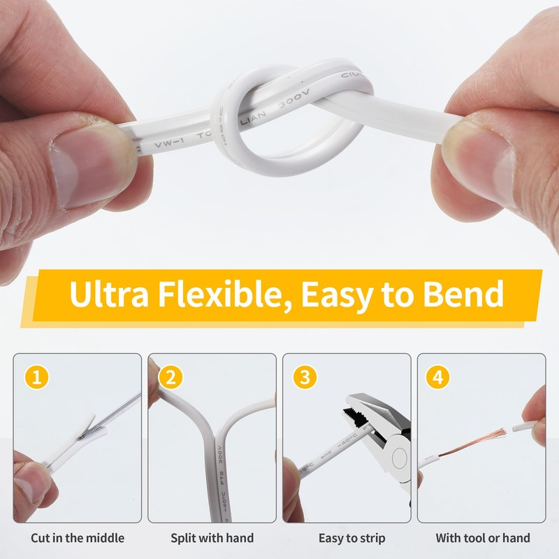 • Easy to Use: The 18/2 electric wire is lightweight, thin, soft can be bent arbitrarily, and is easy to strip, weld, crimp terminals, connect, cut, and wrap around necessary components enough to fit into tight spaces