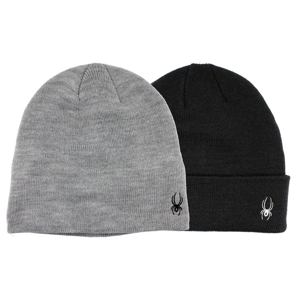 Spyder Hats Wool Blend Beanies Hat for Men Women Two Packs with Inner Fleece Lined Headband Black and Grey One Size Fit Most