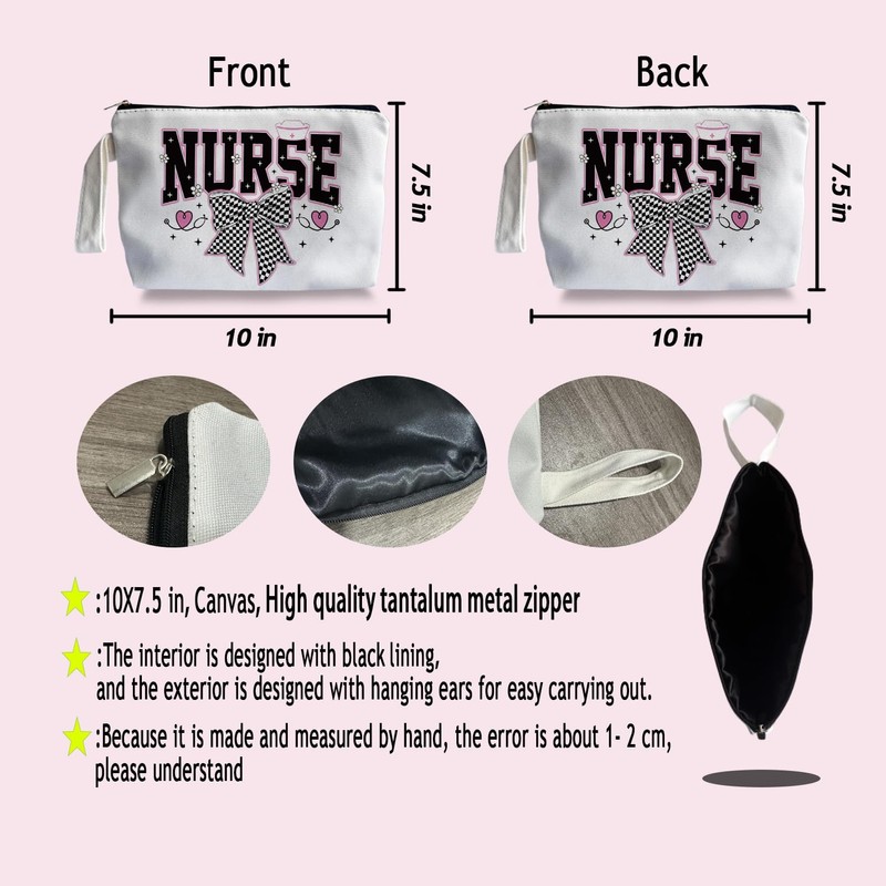 SQQCMM Bow Nurse Makeup Bag - Trendy Nurse Themed Gifts for Lovers Girls Mom Women, Nursing Student Gifts, Canvas Zipper Makeup Bag, Cosmetic Travel Bags for Women