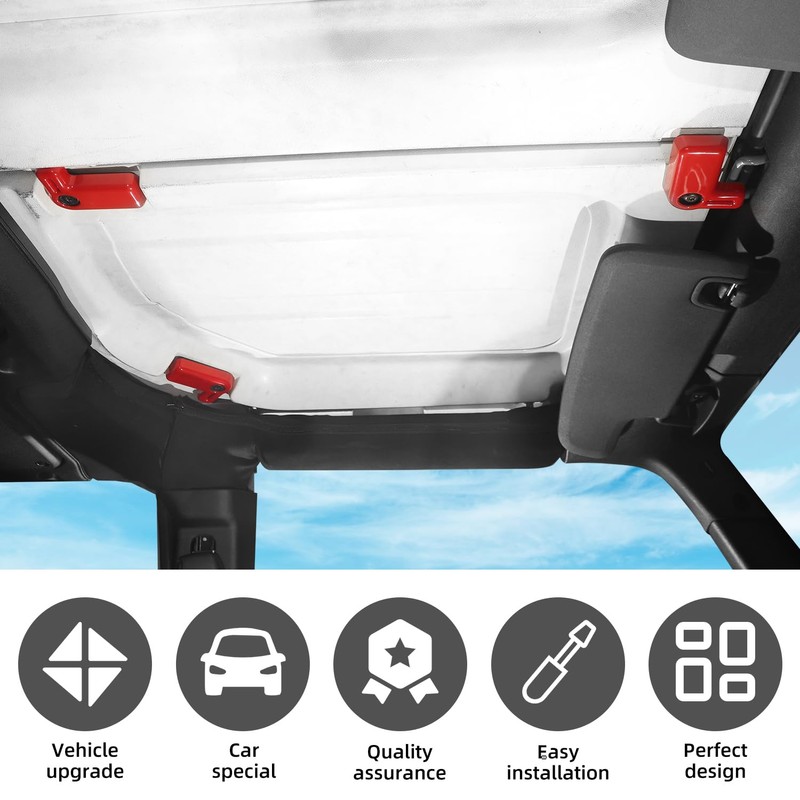 SQQP for JK Hardtop Release Switch Knob Cover, Roof Remove Handle Decoration Trim 4Pcs Compatible with 2007-2018 Jeep Wrangler JK JKU (Red)