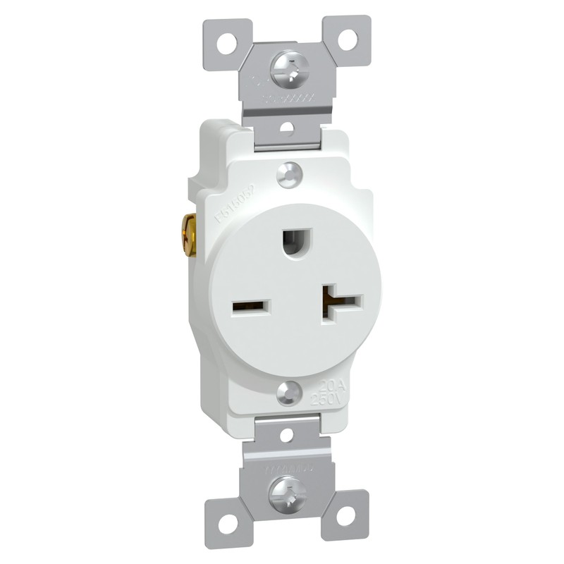 Square D by Schneider Electric X Series 20A 250V Single Socket Electrical Outlet for Residential Use for New Construction or Renovations, Straight Blade Receptacle, SQR42205WH, Matte White