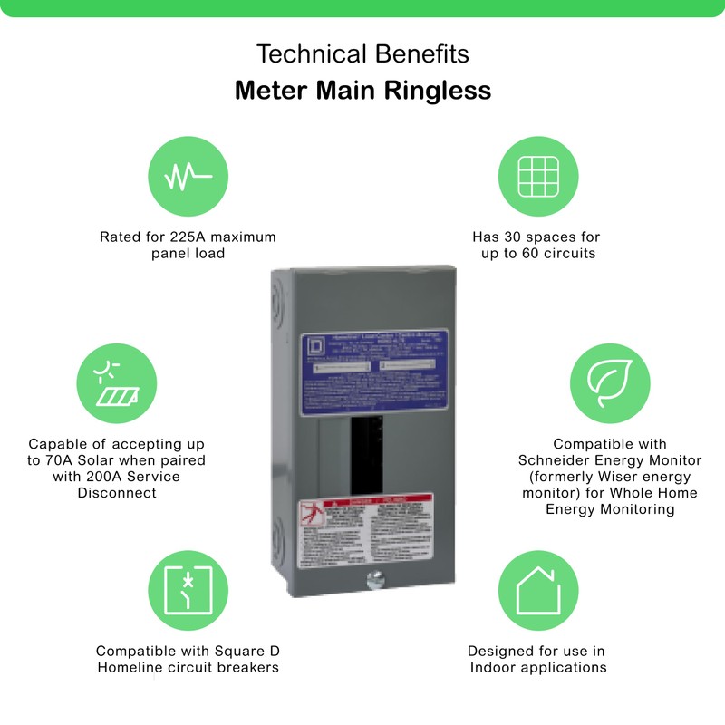 - Includes a combination flush/surface indoor cover and is convertible to main breaker load center with a QOM2 main breaker (sold separately)