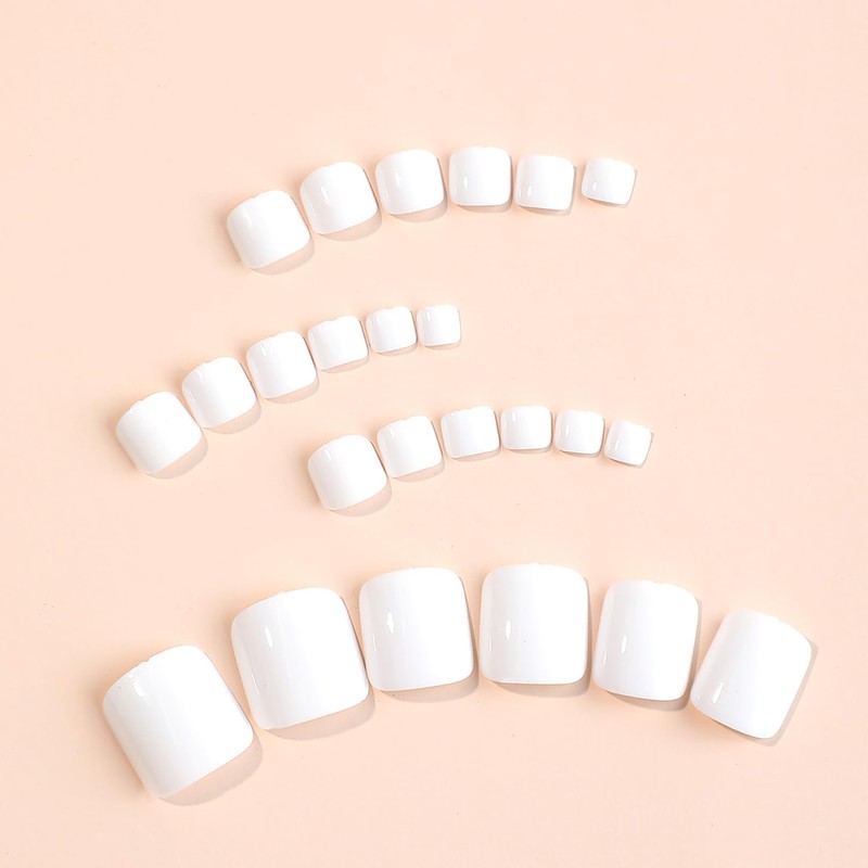 Square Fake Toenails Short Press on Toenails White False Toe Nails with Glue ...
