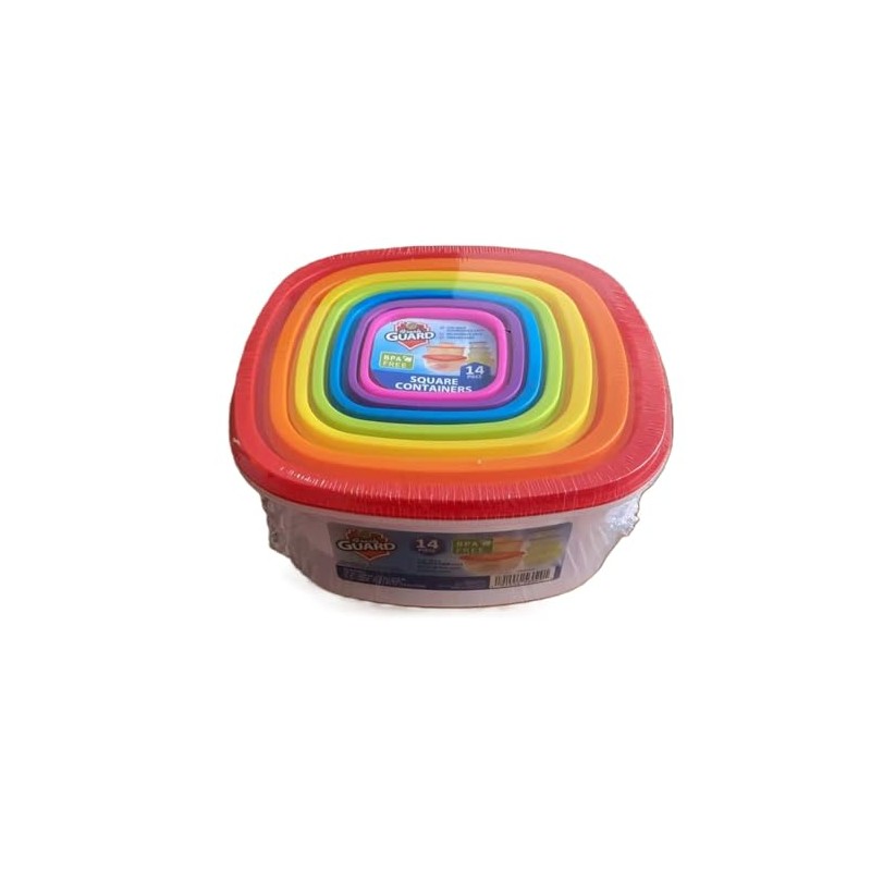 - COMPLETE SET: 14-piece square food storage container set includes 7 containers with matching rainbow-colored airtight lids in various sizes for versatile storage needs