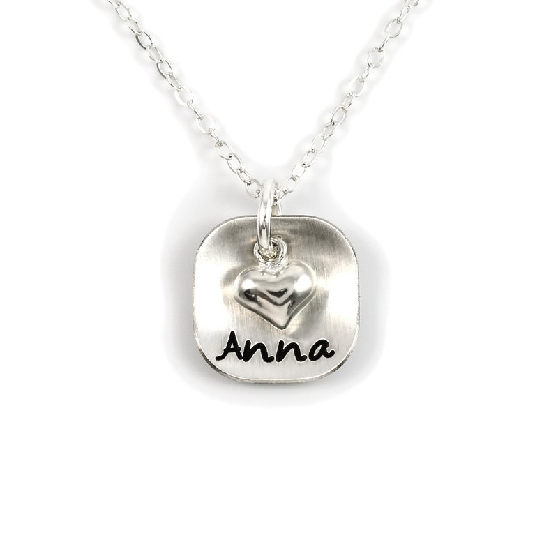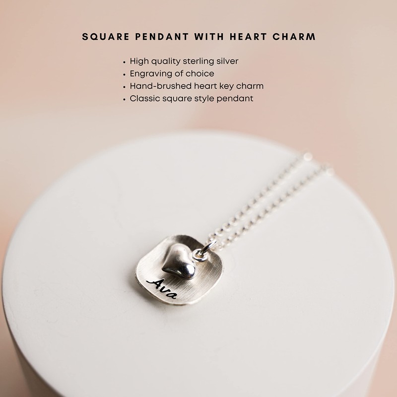 Square Lucky One Sterling Silver Personalized Necklace Comes with 1 Customizable Charms and a Sterling Silver Heart Charm. Your Choice Of 925 Chain. Gifts for Her, Mother, Grandmother, Wife
