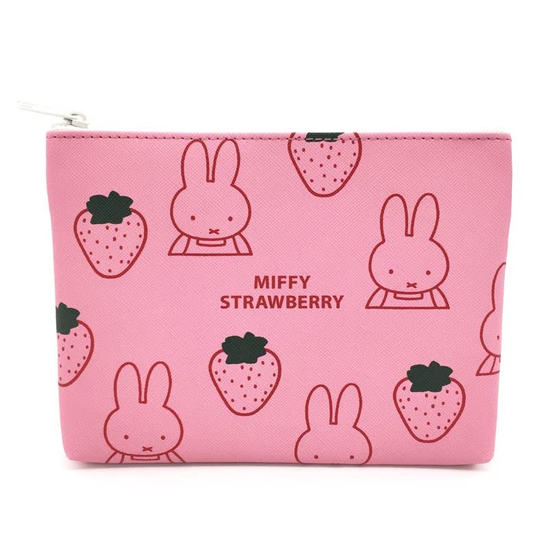 Square Miffy Flat Pouch, Pink 050308 MIFFY STRAWBERRY Dick Bruna, Trinket Case, Cosmetic Pouch, Organization Storage, Pink