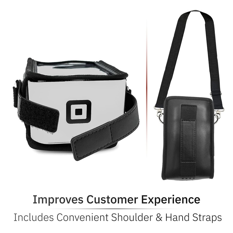 Square POS Device Carrying Case with Shoulder Strap and Hand Strap, Black