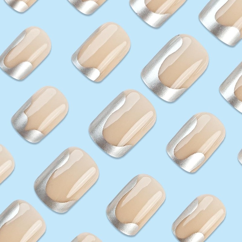 - Easy to use: Just clean your nails, then choose a suitable nail size, apply glue or jelly glue on your nails and press for a moment, you can have silver press on nails short in a few simple steps. Normal care will last a few days, with glue these nude press on nails will last longer.