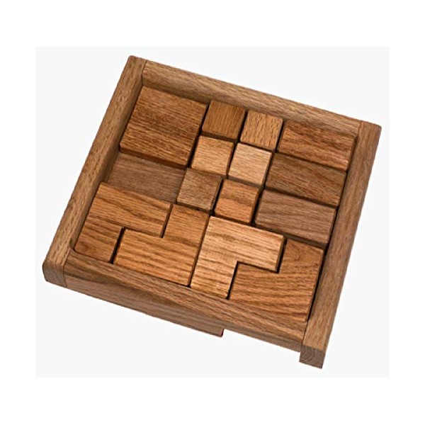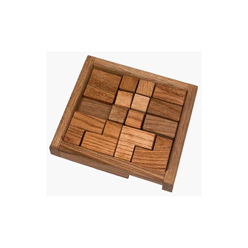 It's twelve games in one! This unique sliding block puzzle offers a dozen different challenges that will supply hours of puzzling entertainment. The object is to maneuver the largest square out through the slot at the bottom without removing, lifting or turning any of the pieces. With each puzzle you solve, the difficulty increases. Solving all twelve is a challenge for any puzzle enthusiast.