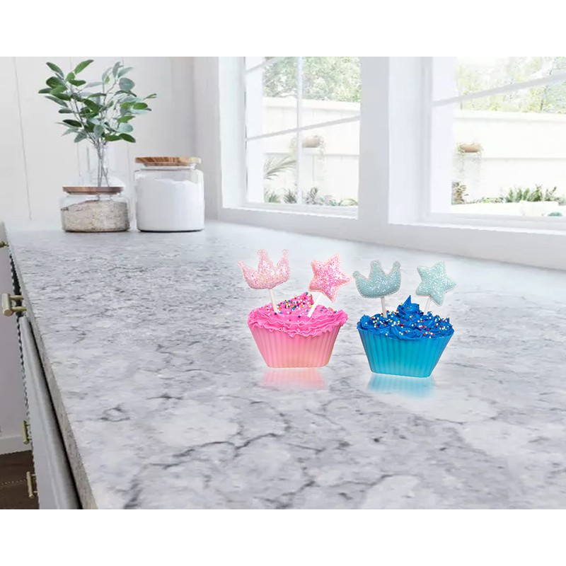 Enhance your baking experience with the VendStars Square Silicone Cupcake Liners. These reusable silicone baking cups come in vibrant pink and blue colors. The set includes 120 pieces, 30 light pink and 30 light blue silicone square baking molds plus 30 pink & 30 blue Crowns & Stars cupcake toppers on a stick. Making it ideal for large gatherings, meal prepping, and everyday use.