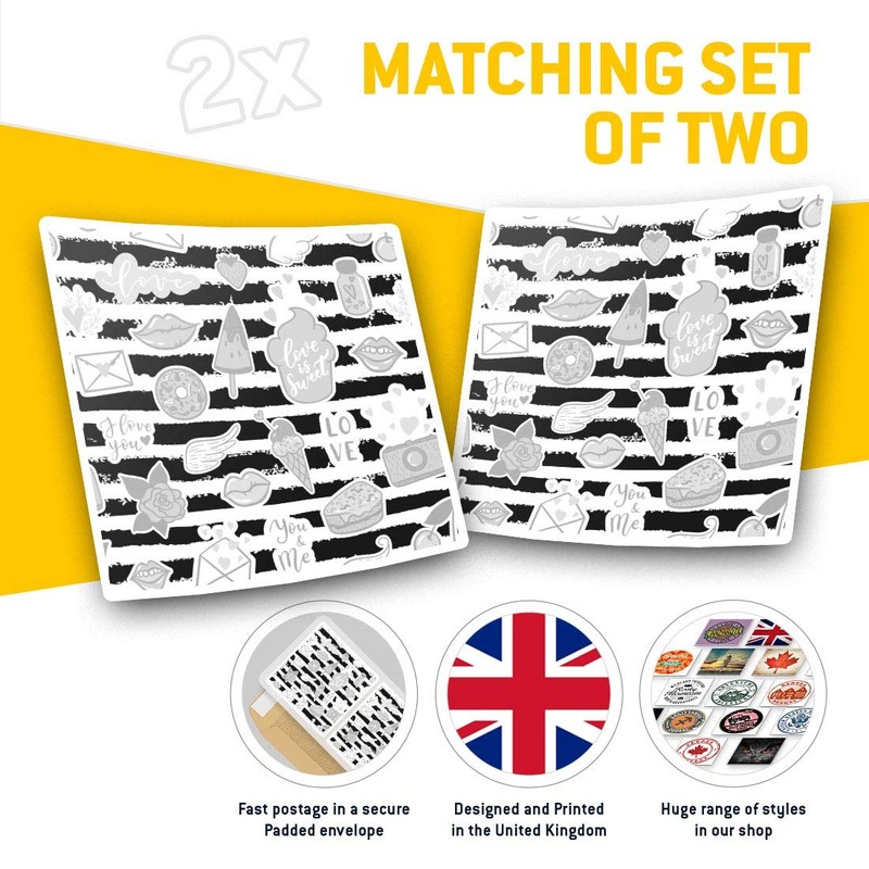 Square Stickers (Set of 2) 7.5cm BW - Funky Girl Icons Love Teen Fun Decals for Laptops,Tablets,Luggage,Scrap Booking,Fridges, #42194