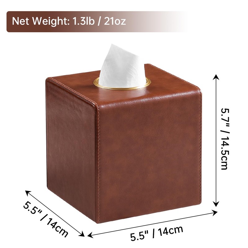 • VISIBLE HIGH QUALITY: The surface of the tissue box holder is made of waterproof and scratch-resistant PU leather, the invisible inner layer is made of sturdy MDF, which supports the entire tissue box, and the inner lining is made of soft velvet