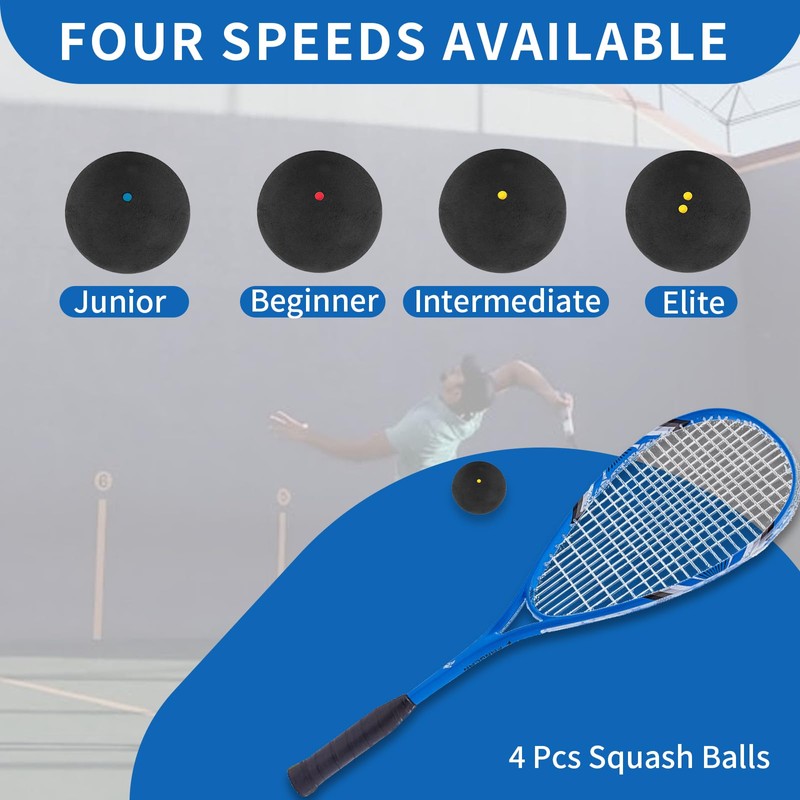 Squash Balls, 4Pcs Squash Balls Double Yellow Dot, Squash Balls Single Yellow Dot, Squash Balls Red Dot, Squash Balls Blue Dot for Elite, Intermediate, Beginner, Junior Competition And Training