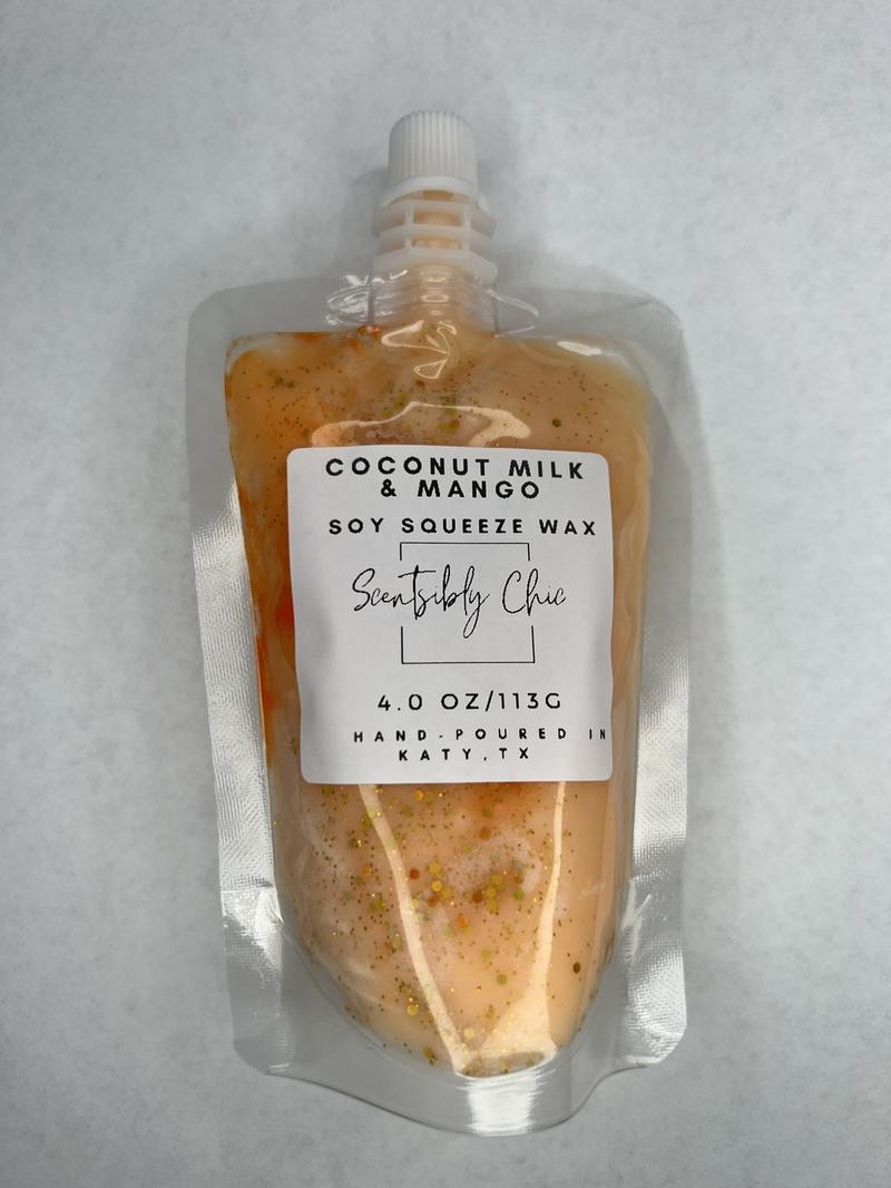Introducing our Highly Scented Squeezable Wax Melts Experience a burst of long-lasting fragrance with every gentle squeeze. Crafted for convenience and luxury, our hand-poured wax melts effortlessly infuse your space with delightful aromas, turning any moment into a lavish retreat. Transform your home into a sanctuary of scent with our irresistibly squeezable wax melts. Elevate your ambiance, one squeeze at a time. Our squeezeable wax melts are designed for easy and mess-free use. Here's how you can enjoy them with our natural soy wax formula: Squeeze & Release: Simply give the bottle a gentle squeeze to release a small amount of wax melt into your warmer or burner. The squeezable design allows for precise control over the amount of wax you use. Even Distribution: The soft texture of our wax melts ensures they melt evenly, filling your space with consistent fragrance from start to finish. No Mess, No Fuss: Unlike traditional wax melts that require breaking or cutting, our squeezeable wax melts eliminate the need for tools or handling. Just squeeze and enjoy the aroma! Soy Wax Benefits: Our wax melts are crafted from natural soy wax, known for its clean-burning properties and ability to hold fragrance effectively. You can feel good about using a sustainable and eco-friendly option in your home. More scents being worked on as we speak.